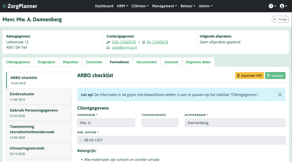Elk bedrijf heeft (vaak veel) formulieren. ZorgPlanner heeft dit probleem opgelost en heeft daar elektronische formulieren voor ontwikkeld, die voor een deel voor-ingevuld worden en ondertekend kunnen worden. Je vindt de formulier onder het tabje “Formulieren”.